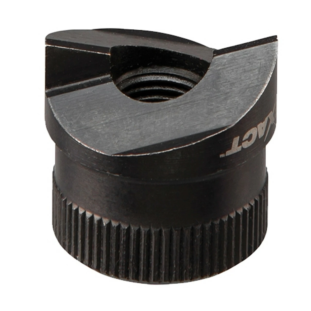 EXACT punches and dies have innovative features which bring value for the contractor. Heavy duty, they can punch holes in both mild and stainless steel material. Engraved crosshairs on the dies deliver clearest alignment with pre-drawn crosshairs. Both the tooth geometry of the punches, and slug removal ports on the dies, provide optimal slug removal. Large size ID markings on both the punches and dies permit easy punch and die selection. EXACT punches and dies do not require spacers. Finally, notches on the punches allow for better grip during punch threading and de-threading. Altogether, EXACT punches and dies make the knockout process easier!