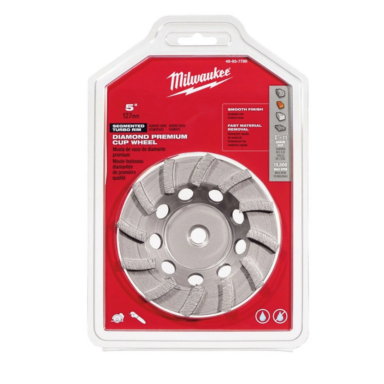 Milwaukee Diamond Cup Wheels are designed to the highest standards, only using quality diamonds. Available in sizes 4 in., 5 in., and 7 in., single-row cup wheels are designed for fast removal, shaping, and smoothing of concrete, masonry, and stone. Milwaukee provides cup wheels in single-row, double-row, and segmented-turbo..
